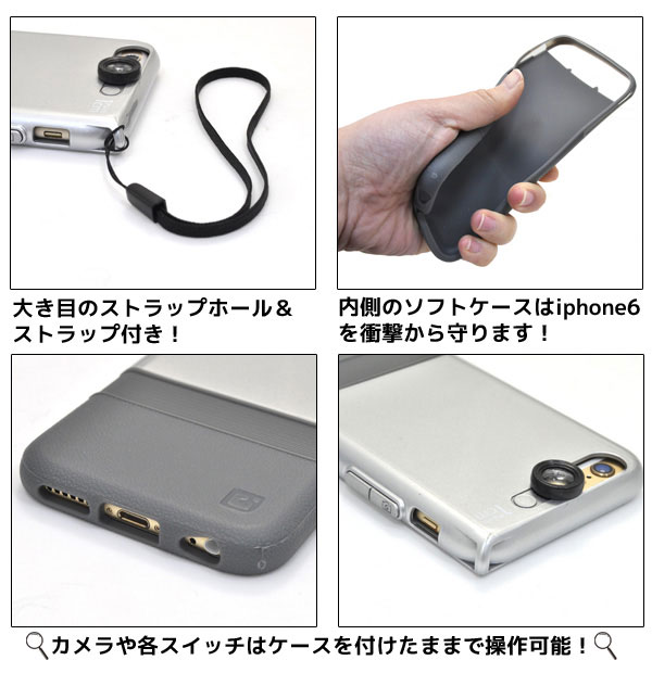 ハードケースとソフトケースの組み合わせで衝撃や 埃などからiPhone6しっかり守ります。