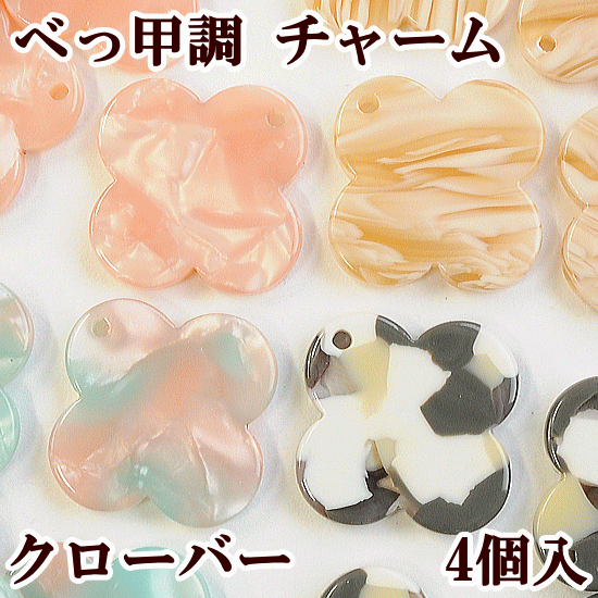 べっ甲調 チャーム クローバー 4個入 全4色 《 可愛い 四葉のクローバー 小ぶり 上品 15mm パーツ ピアス イヤリング ネックレス キーホルダー ハンドメイド 手作り 手芸 》